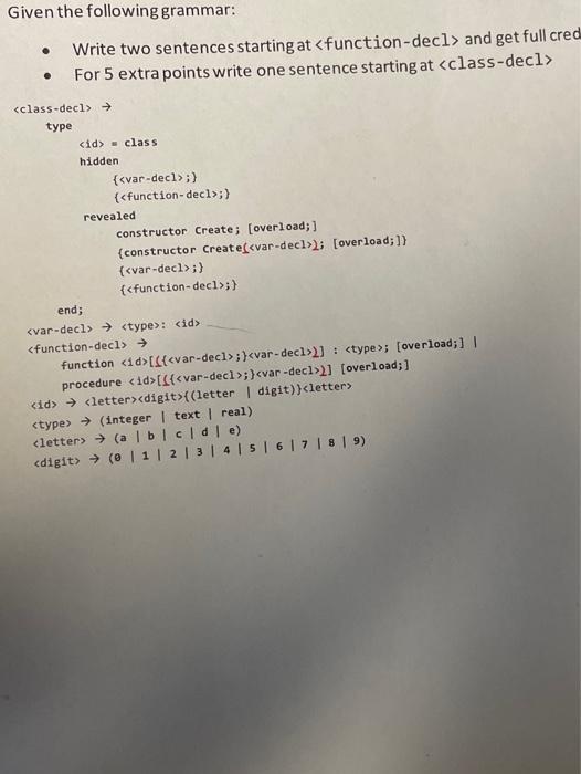 Solved Given The Following Grammar Write Two Sentences Chegg Com