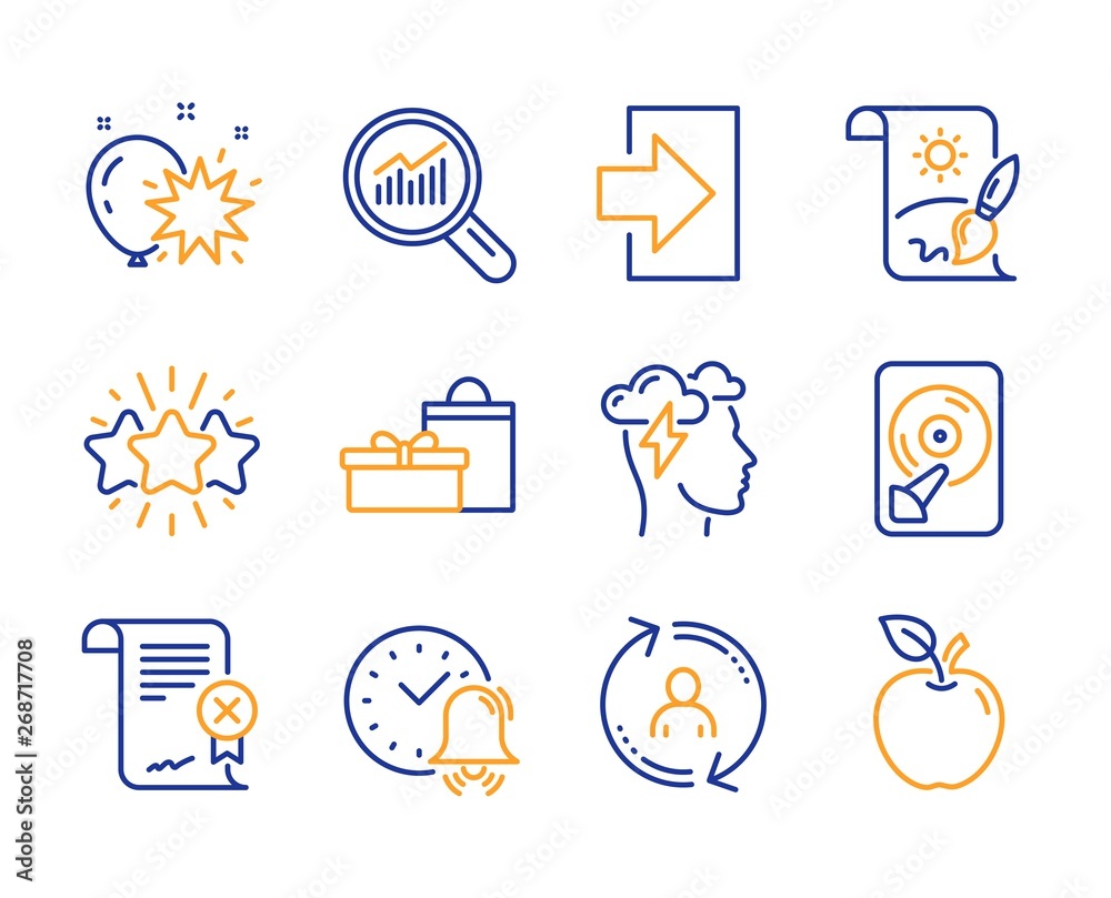 Login Balloon Dart And User Info Icons Simple Set Creative Painting Reject Certificate And Star Signs Mindfulness Stress Hdd And Gifts Symbols Data Analysis Alarm Bell And Apple Vector Stock Vector